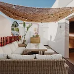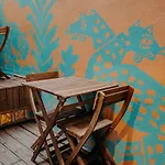 Iç avlu, kütüphane ile birlikte Hotel Palmito, bebek karyolaları, alt değiştirme masası sunmaktadır.